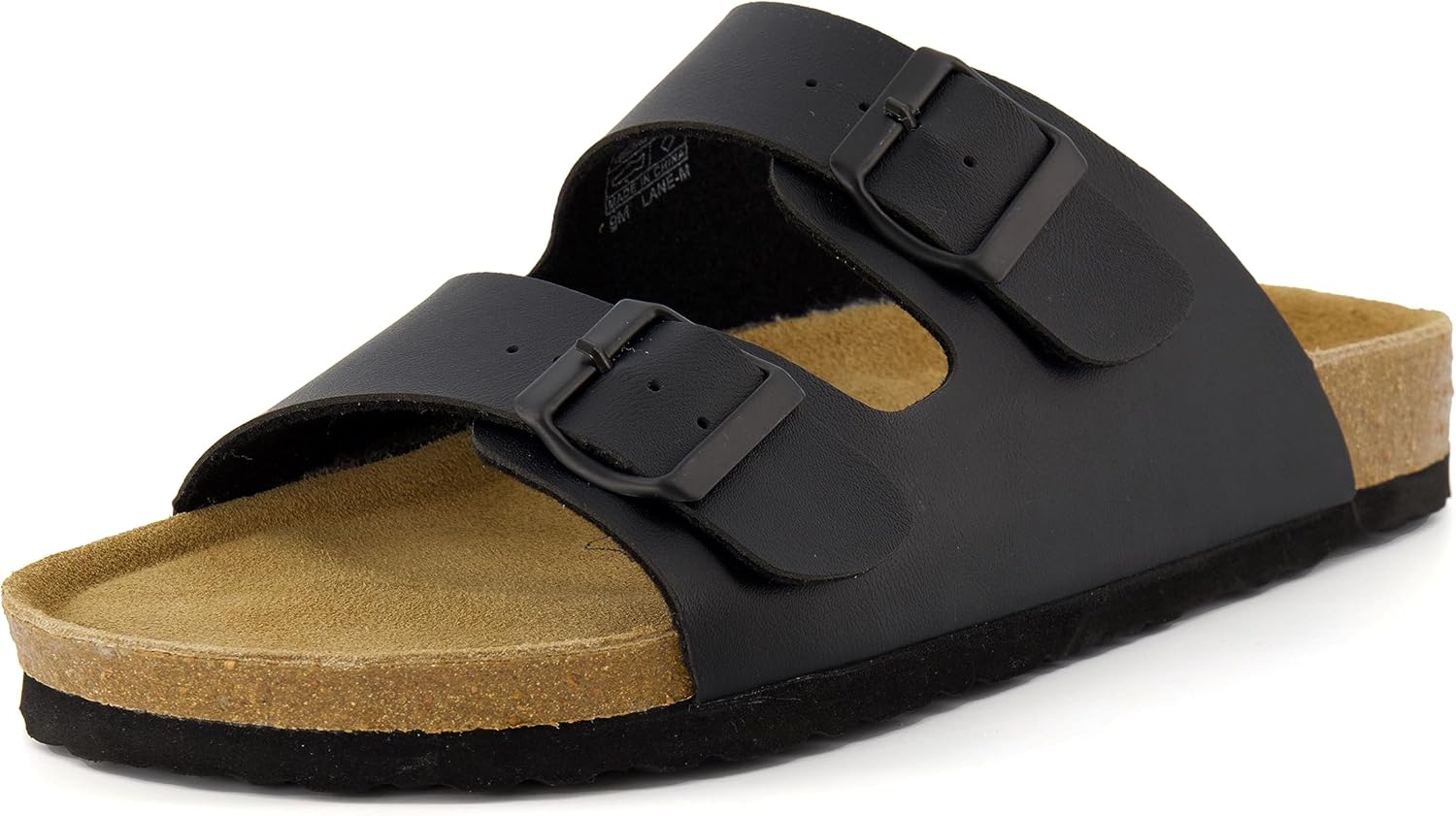 CUSHIONAIRE Men’s Lane Cork footbed Sandal with Adjustable Buckle Straps +Comfort